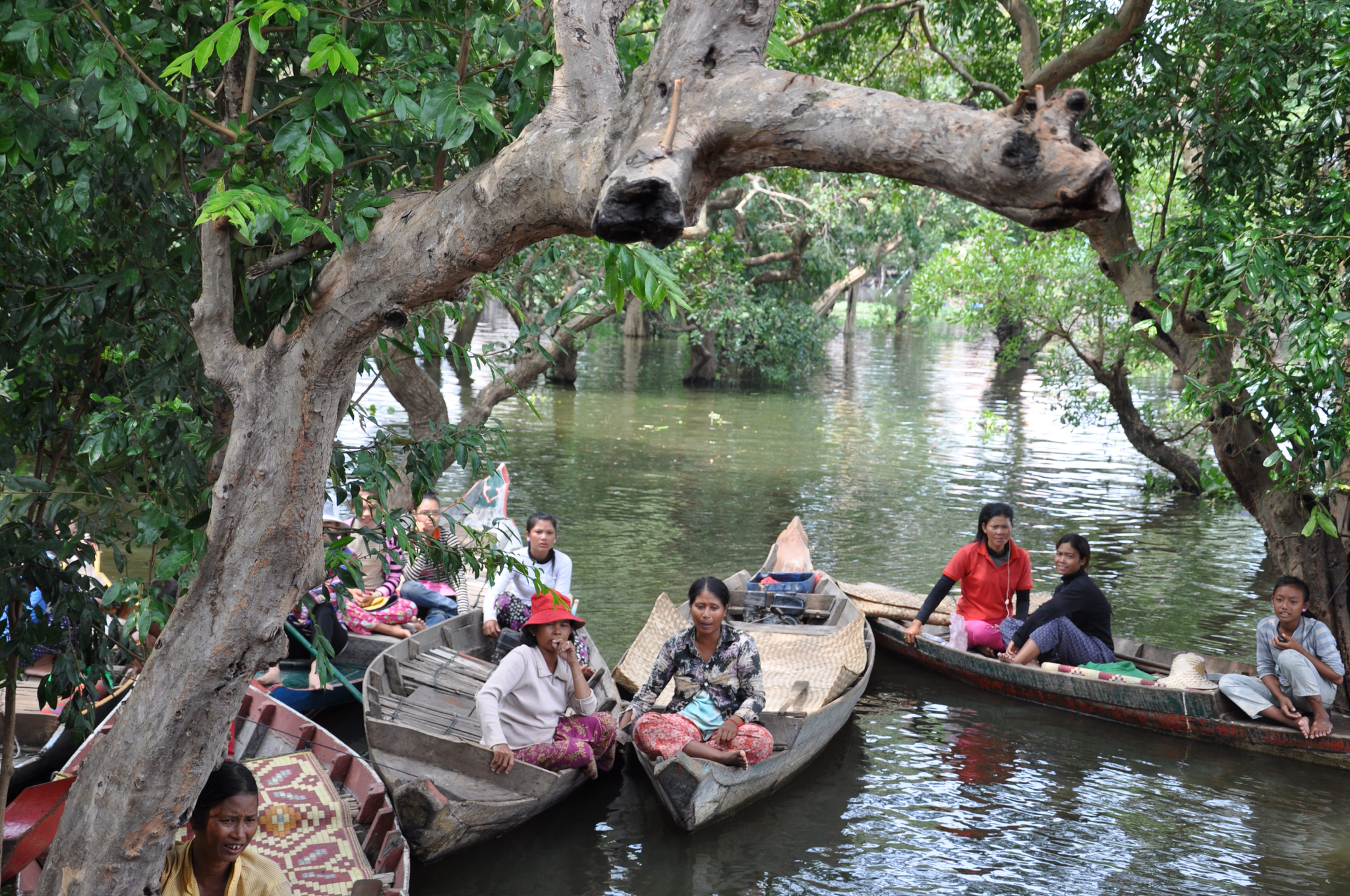 For community and eco friendly visits, we used and highly recommend Beyond Unique tours: best guides, best people. We cooked with them and visited Beng Melea and Tonle Sap lake with them. The latter trip was to floating village, Kompong Pffluk, where six communities have lived on stilt houses on the lake for centuries. We are visiting in October just before the big tourist season, so the water level is still quite high as the cooler, drier season hasn't quite set in yet;( this is the best time to come, we think! ) The mangrove forest around the lake, through which a villager took us in her boat, was submerged under the water and you could only see the canopy above water. Shades of Tai O in Lantau but then again completely different.